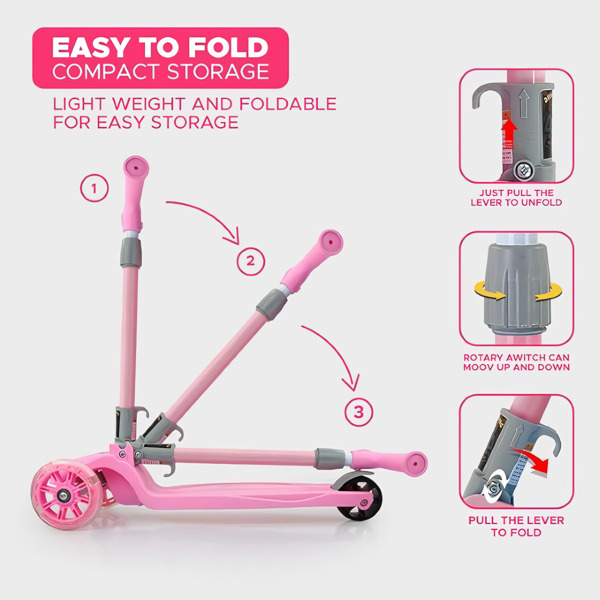 In dem Moment, in dem Kinder sehen, wie die Räder aufleuchten, wird der Roller zu ihrem Lieblingsstück. Die LED-Räder blinken automatisch bei jedem Abstoßen – keine Batterien erforderlich, sie werden vollständig durch die Drehbewegung angetrieben. Mehr Zeit zum Fahren, null Ausflüge in den Laden für Batterien.