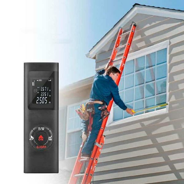 Der Laser-Entfernungsmesser ist kompakt und tragbar, sodass Sie ihn in Ihrer Tasche, Werkzeugkiste oder Tasche verstauen können.
