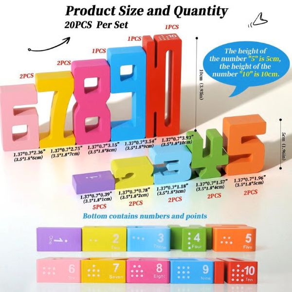Design: Zahlenblöcke mit kreativen Stapelformen (20 Stück)