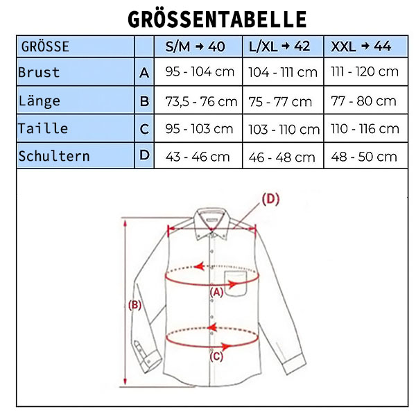 Das Hemd schmiegt sich gut an den Körper an und wird von der Brust bis zur Taille sanft schmaler.